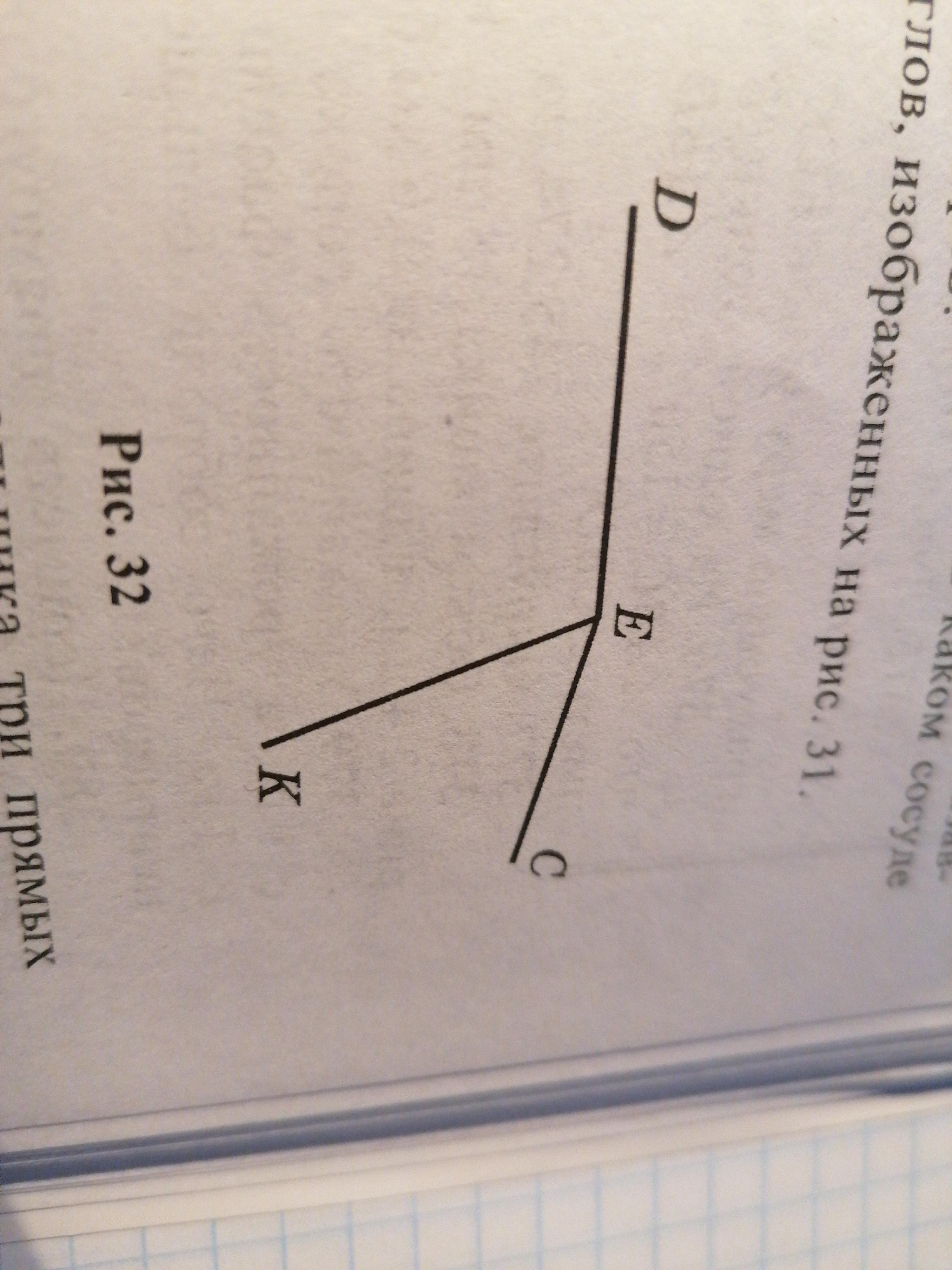 Измерте углы DEK и KEC изображенные на рис. 32 Вычислите градусную меру угла DEC