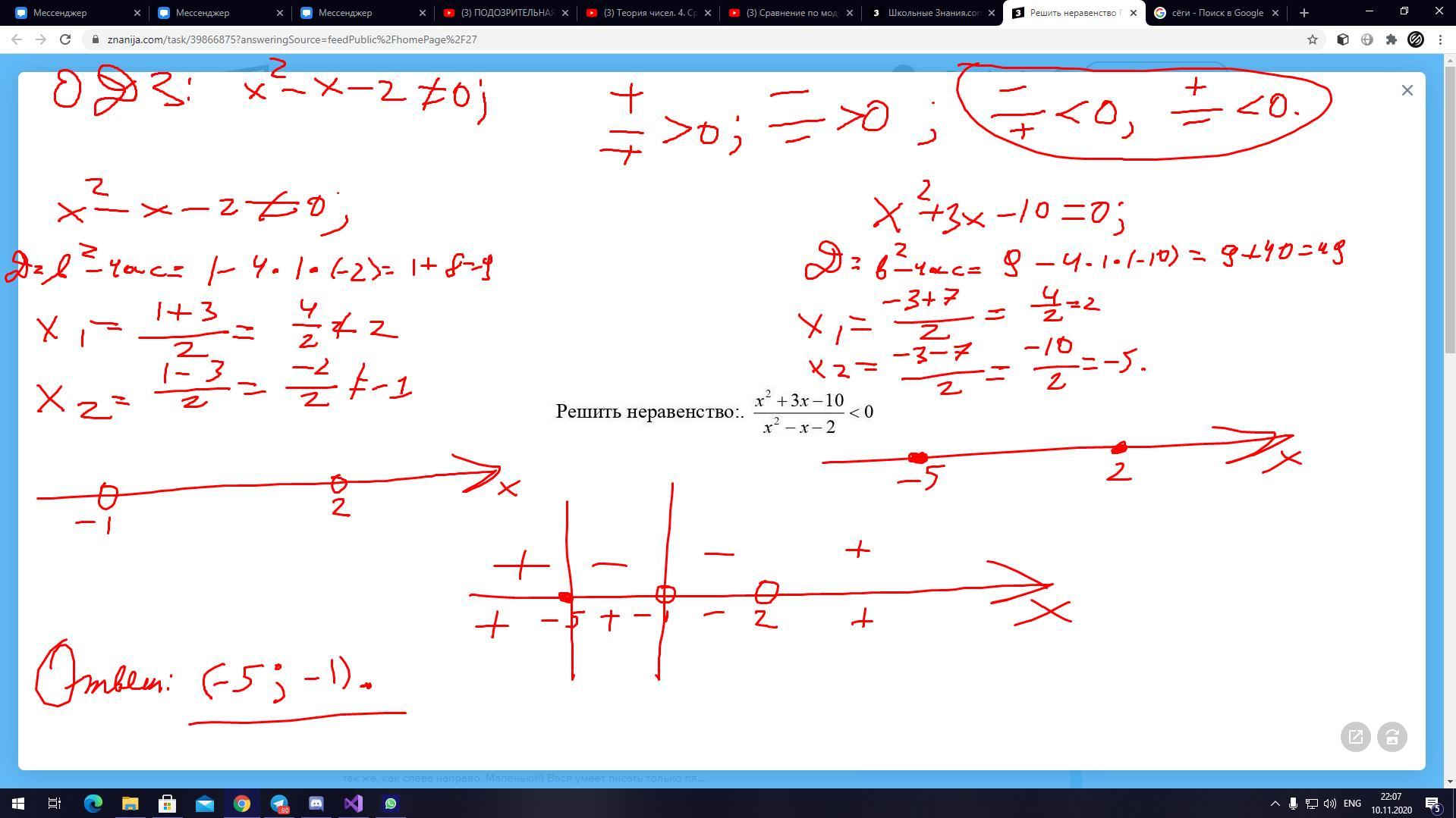 я немного криво там вычеркнул -5 из решения, потому что должен был решать числитель<0, а решил числитель=0, в принципе не страшно, я ответ правильный сделал. Чисто решение кривовато =)