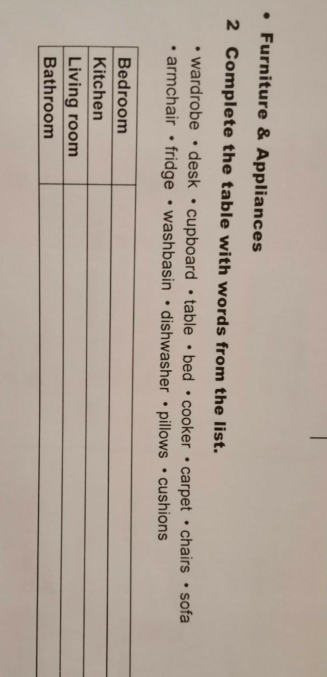 Ответ: Bedroom: wardrobe, desk, bed, pillows.