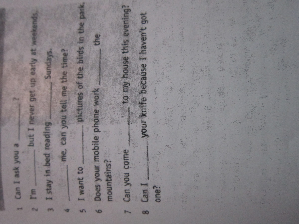 5 Take, 6 in, 4 excuse, 7 round, 1 favour, 2 sorry ,3 on ,8 borrow