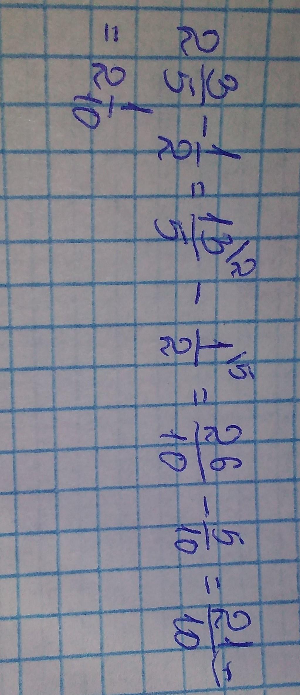 приводим к общему знаменателю 10; получается 26/10-5/10=21/10=2 1/10