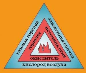 Пожар возникает при одновременном наличии трех основных условий: (см. фото)
