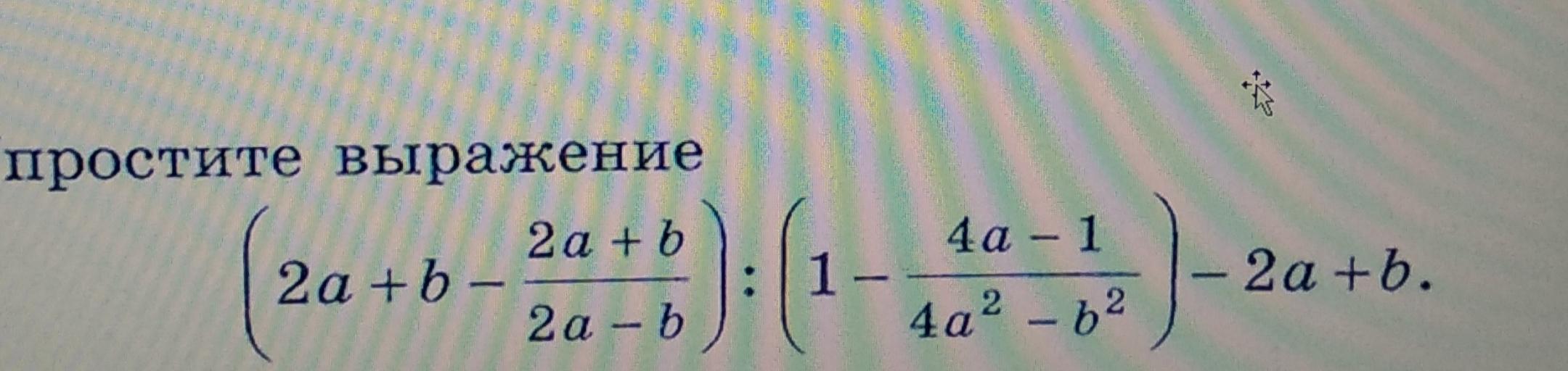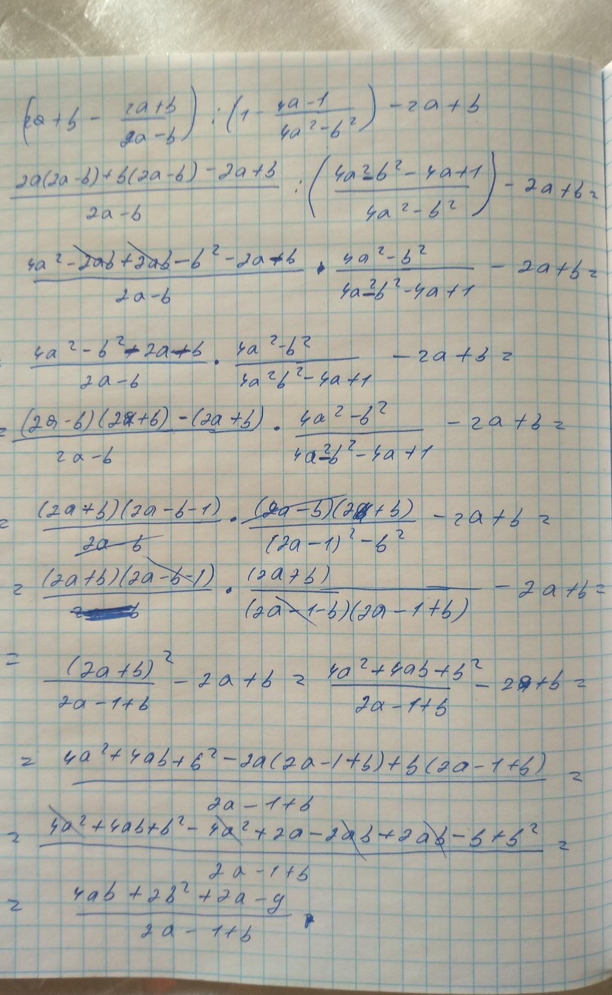 Упрастите выражени (2a+b-2a+b/2a-b):(1-4a-1/4a²-b²)-2a+b. Помогите пожалуйста очень надо