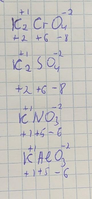 Степень окисления K2CrO4 , K2SO4 , KNO3 , KAlO3