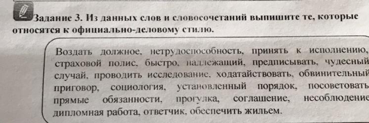 Задание 3. Из данных слов и словосочетаний выпишите те, которые