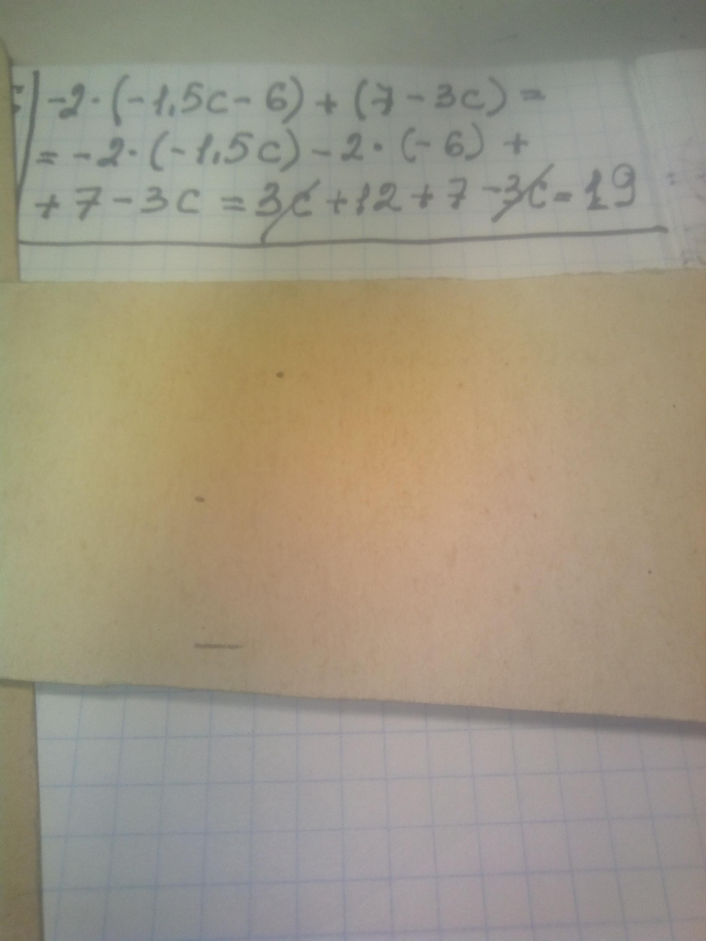 -2·(-1.5c-6)+(7-3c)=3c+12+7-3c=19