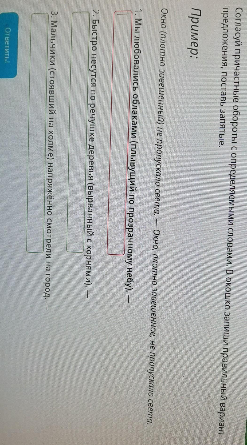 1. Мы любовались облаками, плывущими по прозрачному небу.