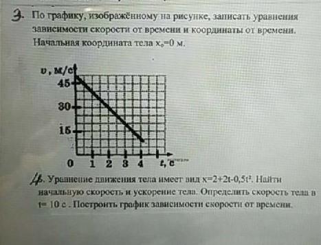 3. ускорение a=(30-45)/(2-0,5)=-10 м/с^2