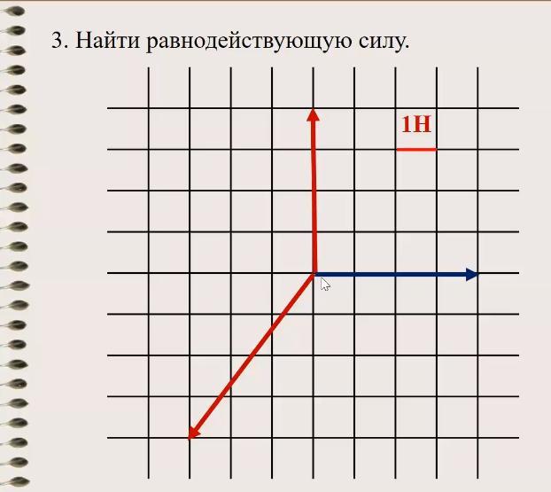 4-3=1 Н (3 - проекция нижней силы на ОХ)