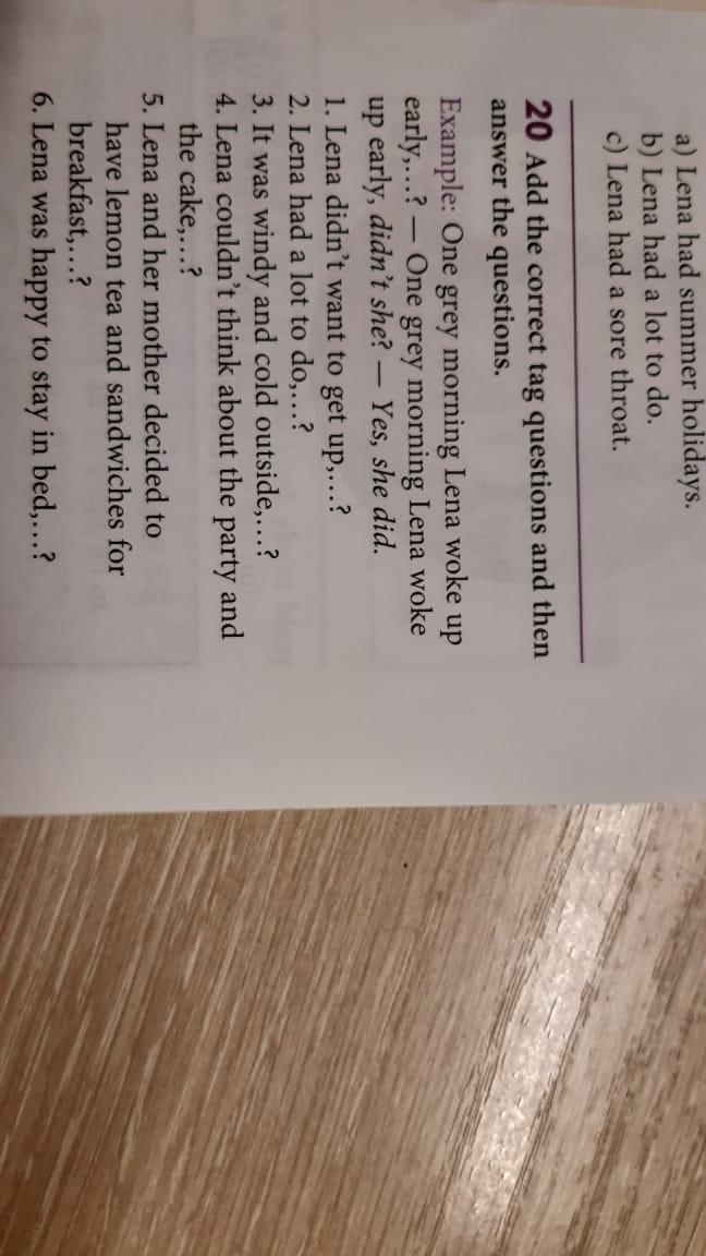 это же задании к тексту. Перед этим должен быть текст, что Лена утром рано не встала потому что заболела, ей не нравиться.....