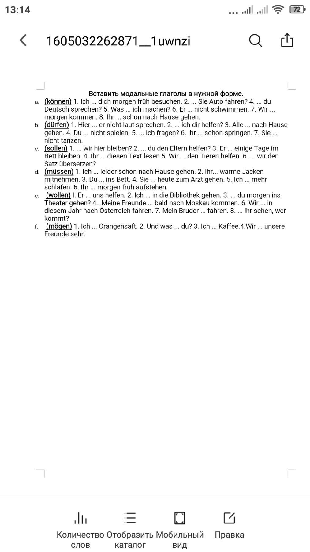 1. muss 2. müsst 3. musst 4. muss (она) 5. muss 6. müsst