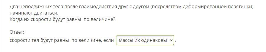 Импульсы (модули) тел при одинаковых скоростях будут одинаковыми если МАССЫ ОДИНАКОВЫЕ.