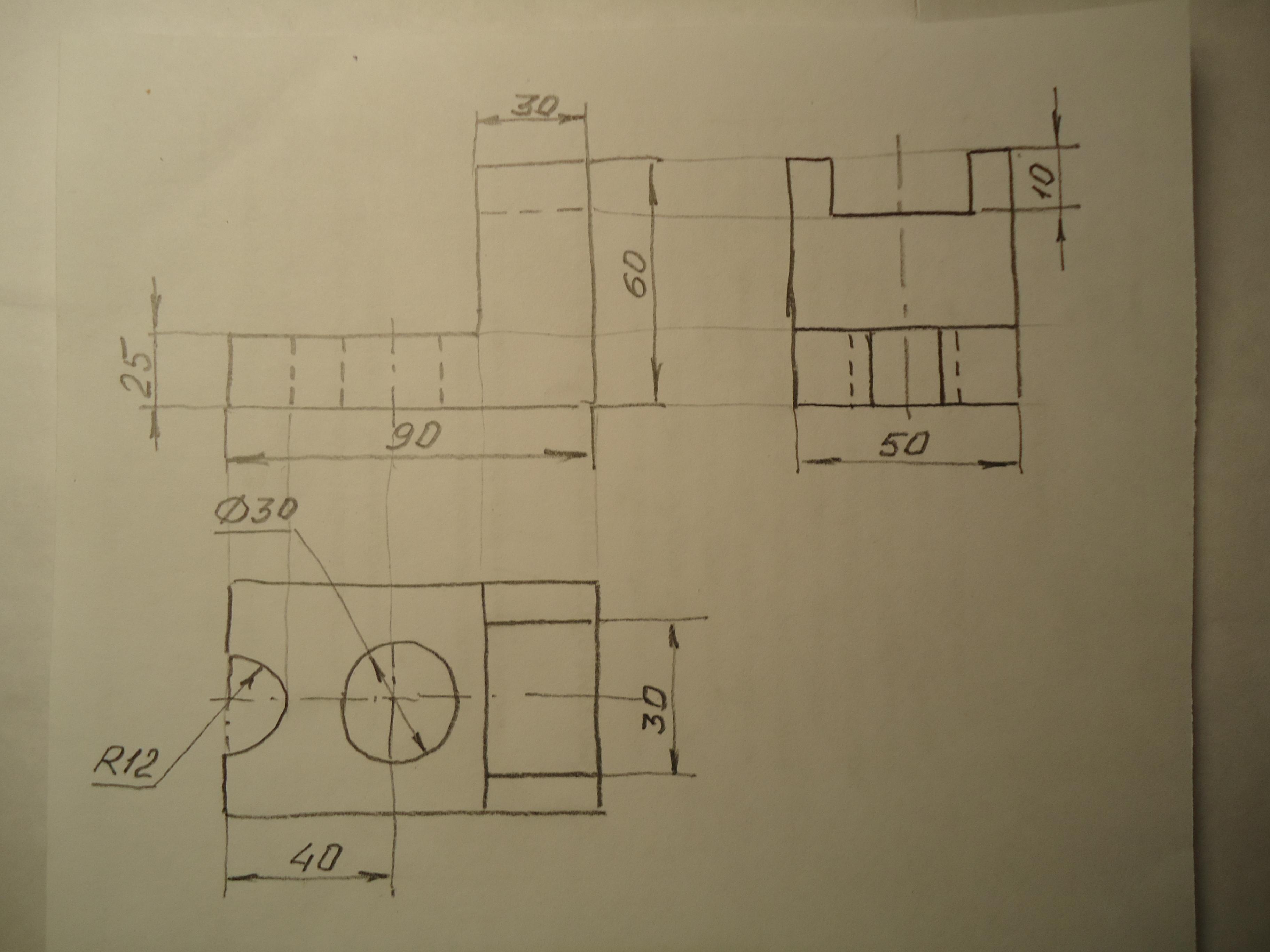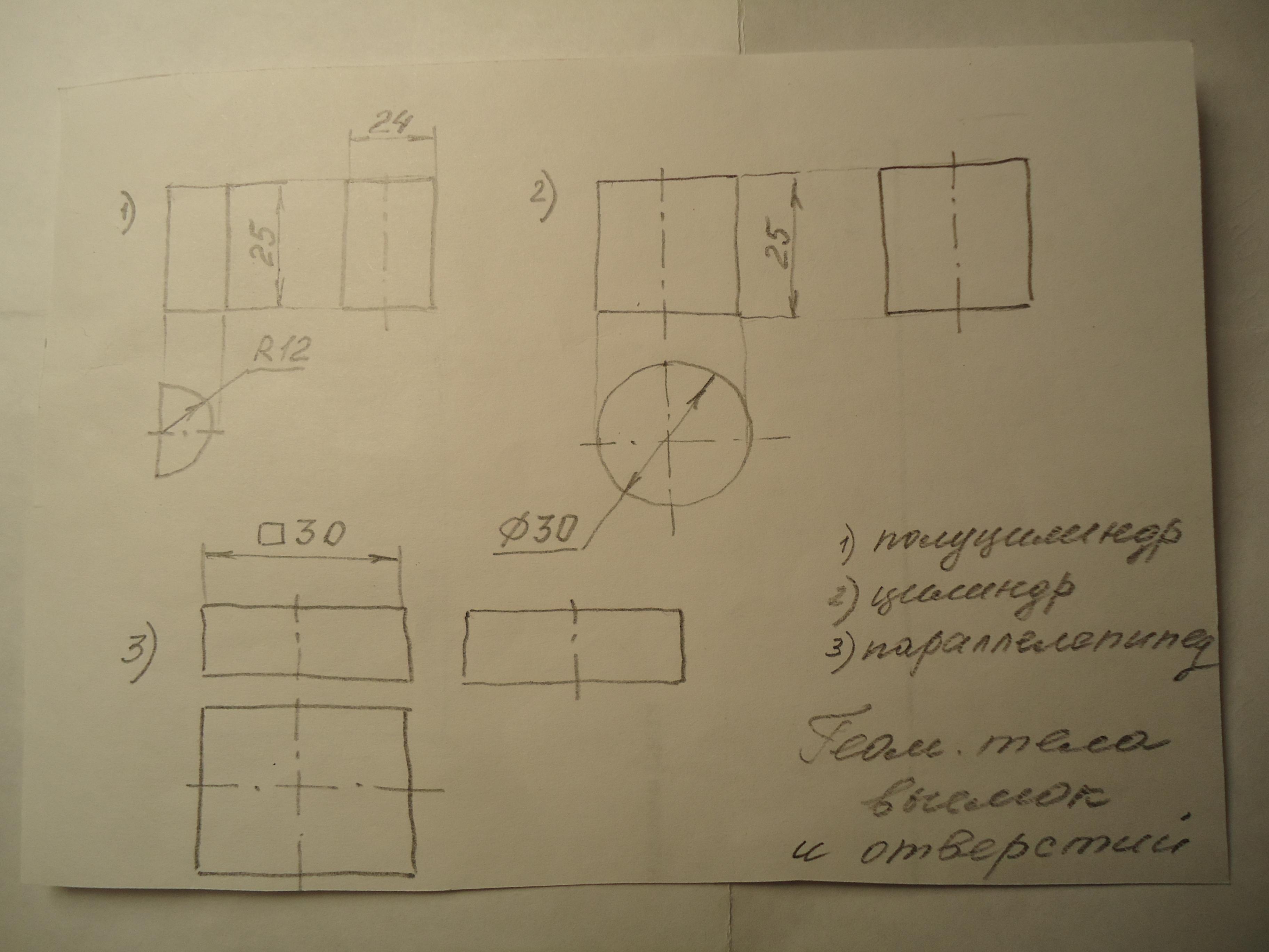 На фото 1,2,3 изображены комплексные чертежи из трёх проекций для геометрических тел, из которых состоит деталь и самой детали.