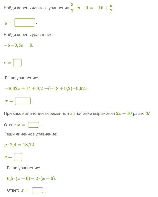 y=-24.5; e= -12; x=-32; x= 6.5; g= 7.8; x = 10