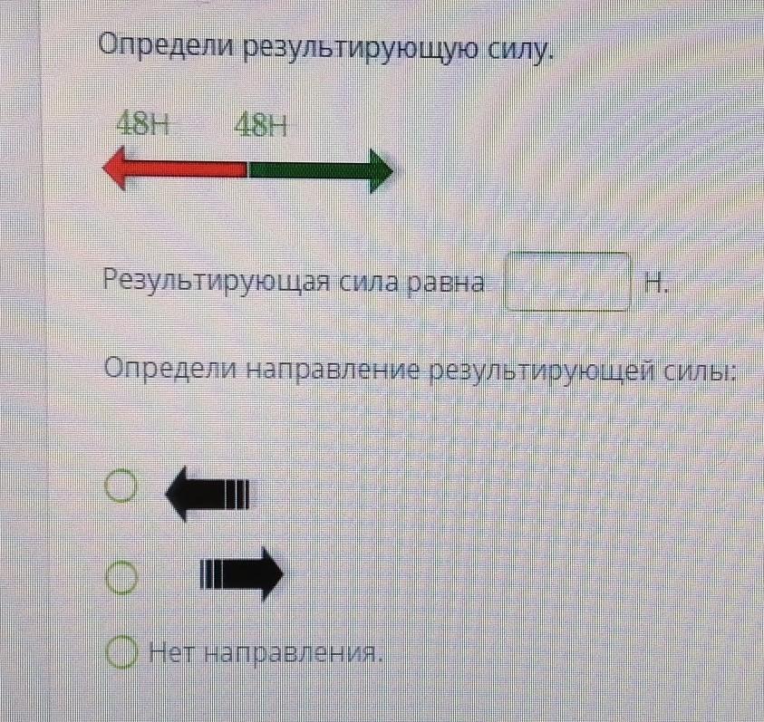 результирующая равна нулю, т.к. модули сил равны, ну и соответственно у неё нет направления