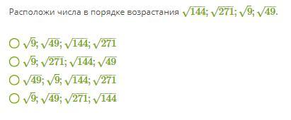 √9;√49;√271;√144 - вариант ответа №1