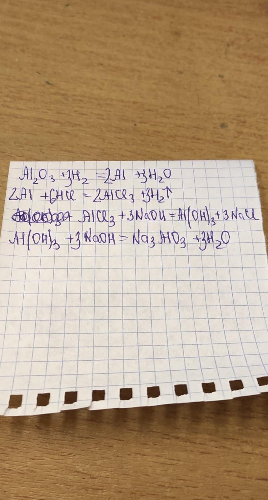 Напишите уравнения реакций:AI2O3 → AI → AICI3 → AI(OH)3 → Na3AIO3