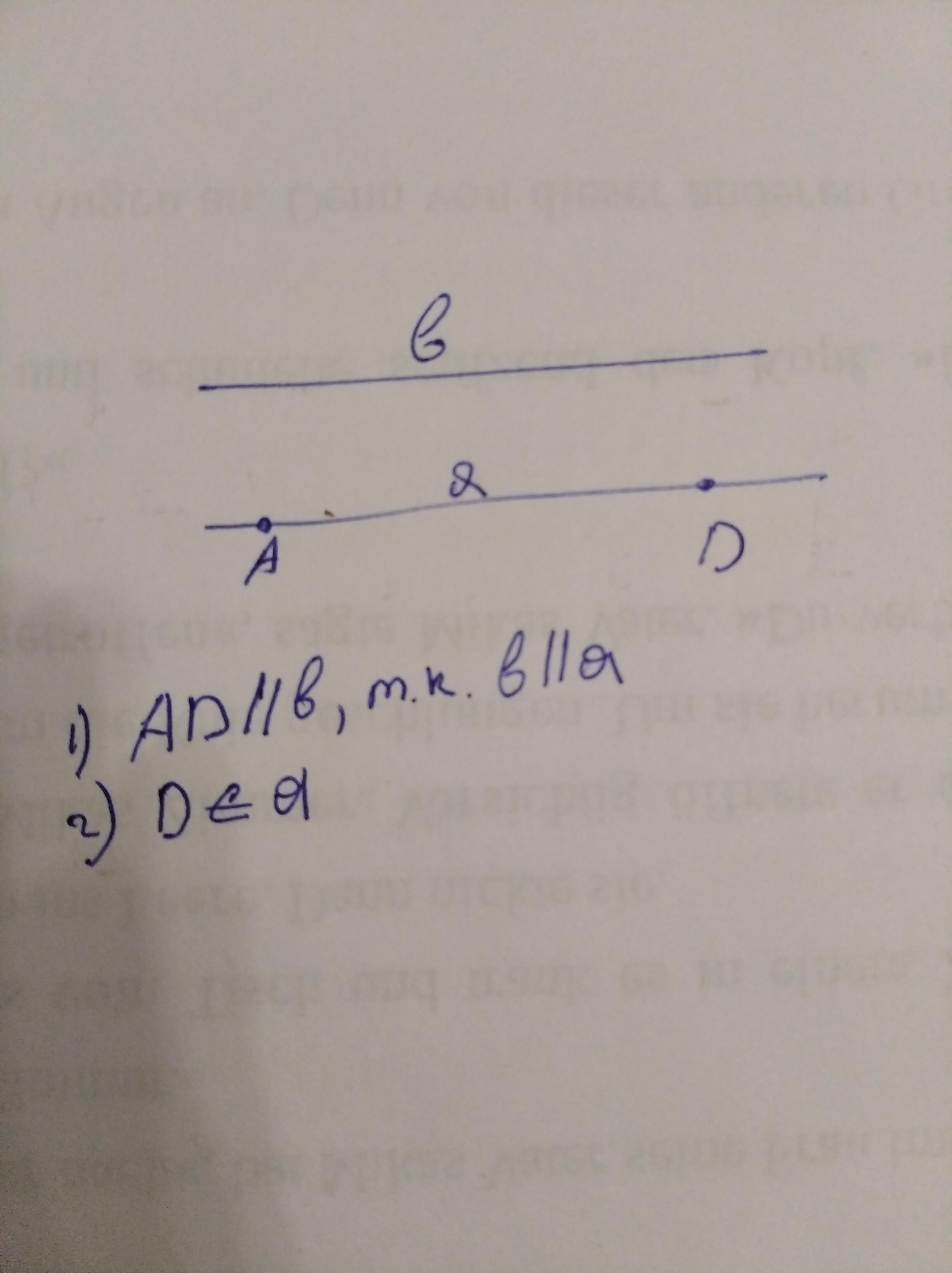 2) точка D лежить на прямій а тому що пряма а проходить через точку D.