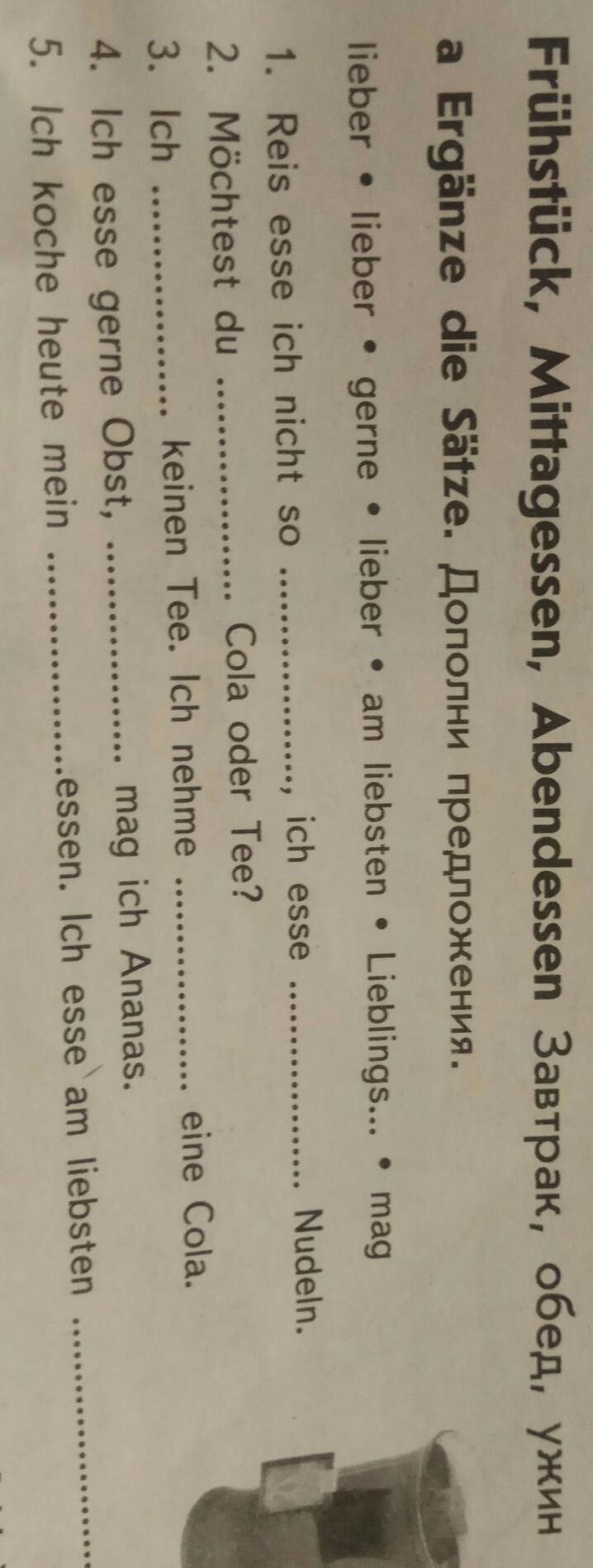 Ich esse am liebsten eine Pilzsuppe. (грибной суп)