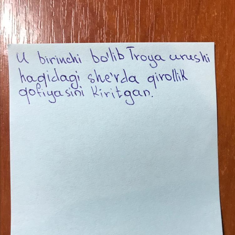 He was the first who indroduced royal rhyming in the poem about the Trojan War. перевод на узбекский пожалуйста !