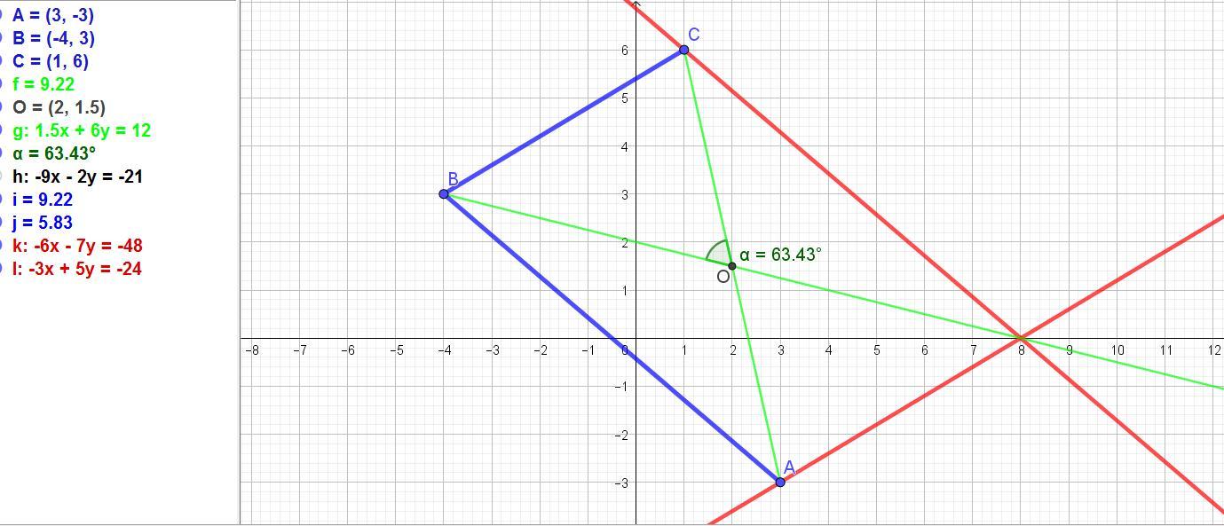 Даны три вершины: А(3; -3), В(-4; 3), С(1; 6).