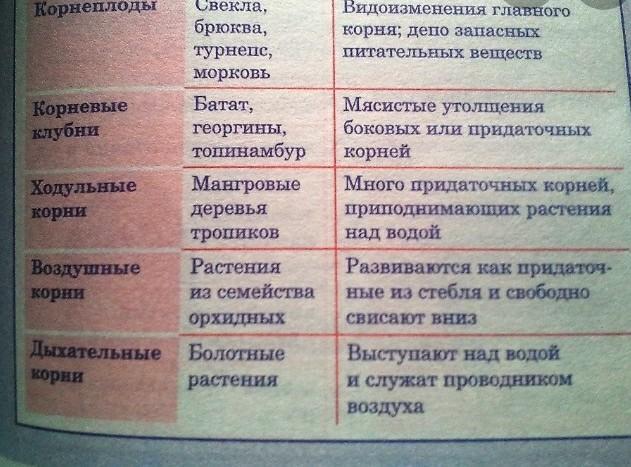 таблица видоизменений корней