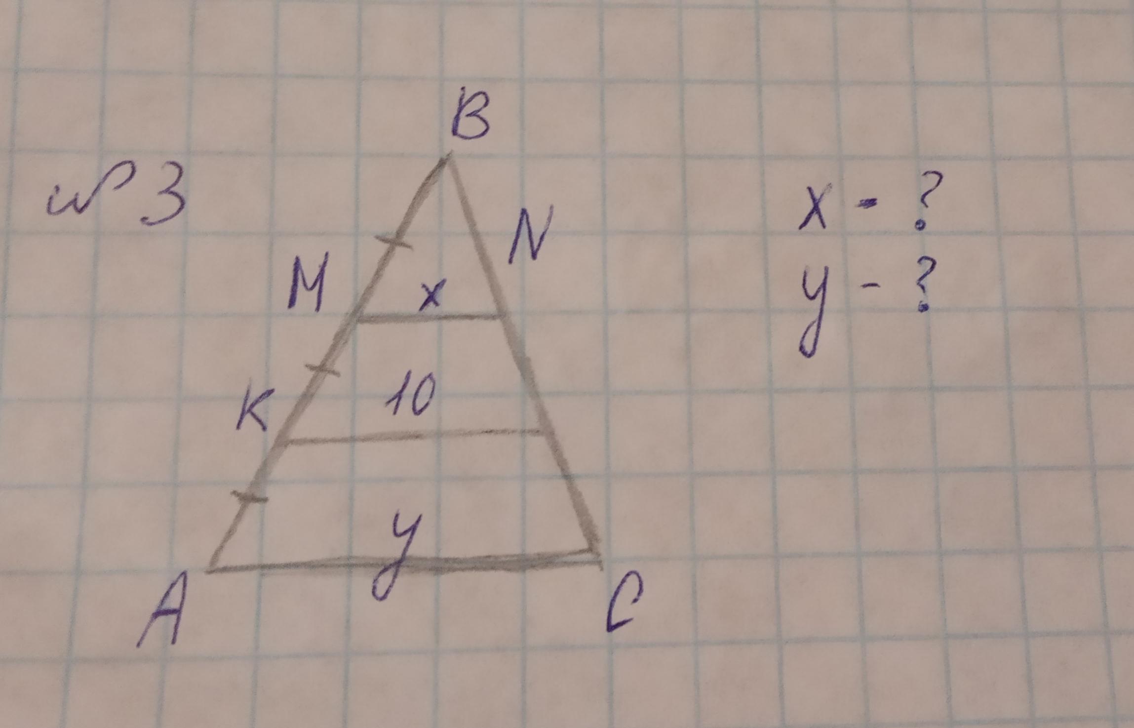обозначим ВН через т ВК=2т по подобию треугольников( или по расширениям теоремы Фалеса) получаем пропорцию т/2т=х/10