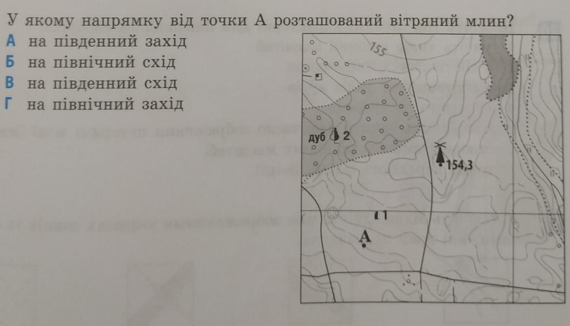 На северо-западе,на одится ветрянная мельница, относительно точки А.