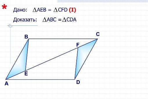 Так как по условию задачи AEB = CFD, то BA = CD и <A = <C.
