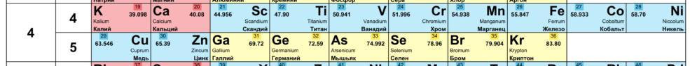 Четвёртый период образует 18 элементов.