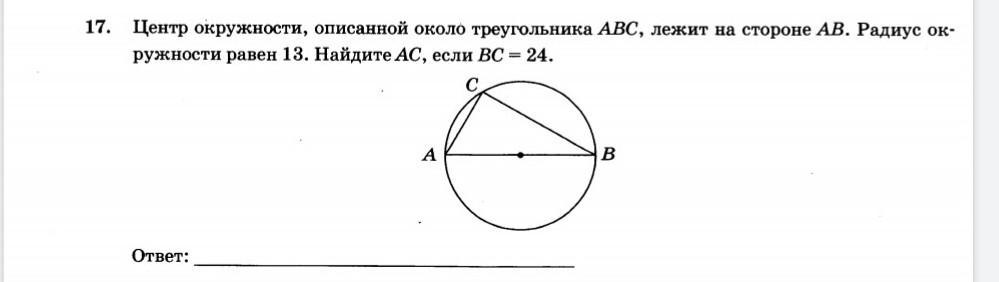 Поскольку центр окружности принадлежит АВ, значит АВ диаметр ⇒ угол АСВ прямой ⇒ треугольник АВС прямоугольный