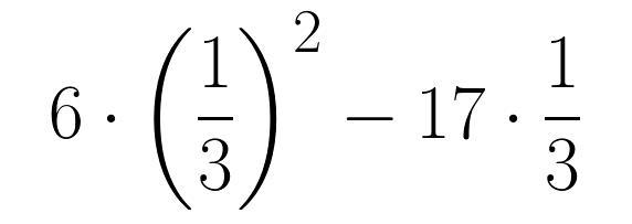 6×(1/3)²-17×1/3 = 6×1/9 - 5 2/3 = 2/3 - 5 2/3 = -5