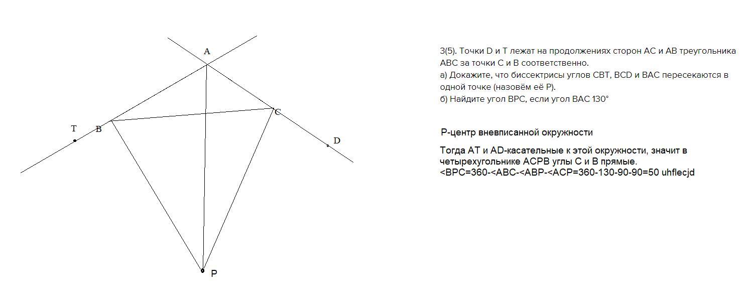 3(5). Точки D и Т лежат на продолжениях сторон AC и AB треугольника ABC за точки С и В соответственно.
