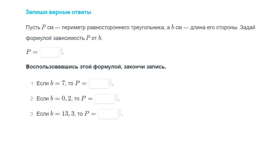 Пусть P см периметр равностороненго треугольника а b см длина его стороны. задай формулой зависимость P от b