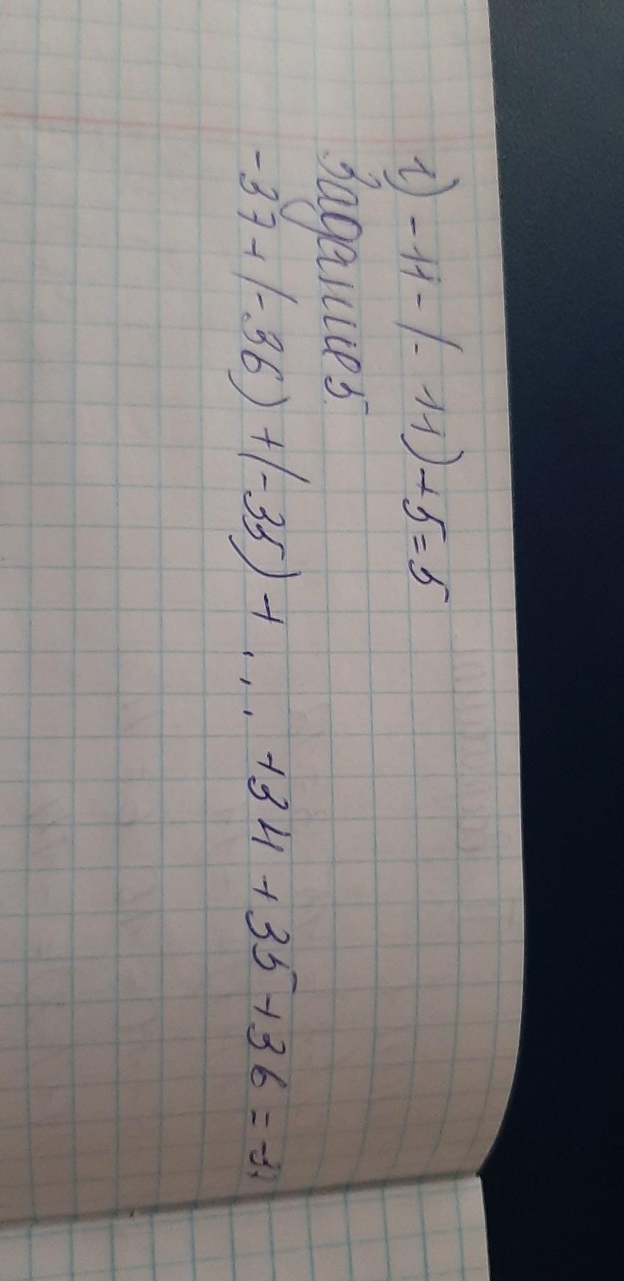 В 6 задание получилрсь -37 тк -36+36=0 или -35+35=0 у все чисел от -36 до 36 в сумме получается 0. Но тощько у - 37 нет слагаемого 37 и поэтому в итоге получится -37+0=-37 поэтому Ответ: -37
