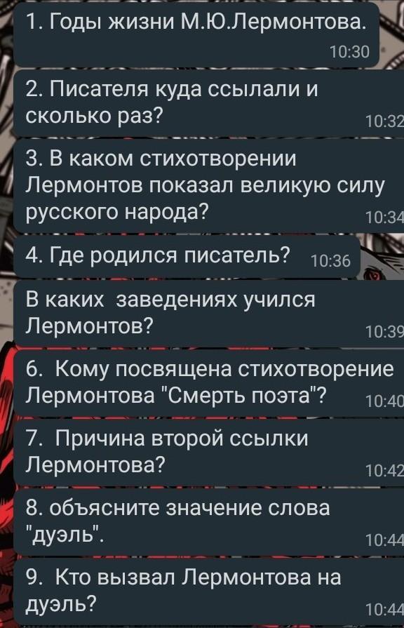 6) Лермонтов поступил на 4-й курс Благородного пансиона при Московском университете (среднее учебное заведение для детей дворянства), где начал писать стихи и первые поэмы ("Черкесы", "Кавказский пленник").