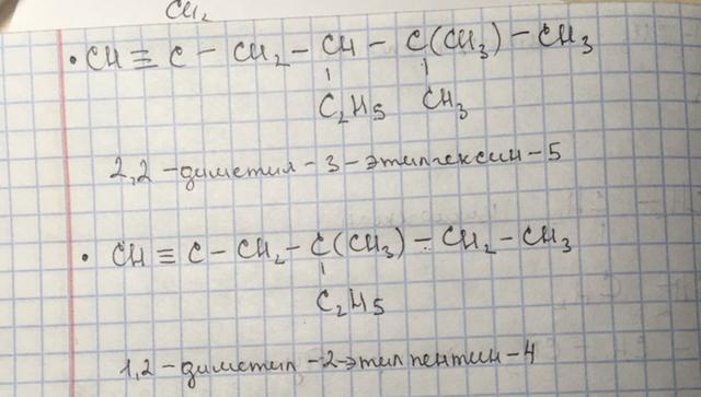 2,2-диметил,3-этил,гексин -5,1,2-диметил,2-этил,пентин -4 структура формула.