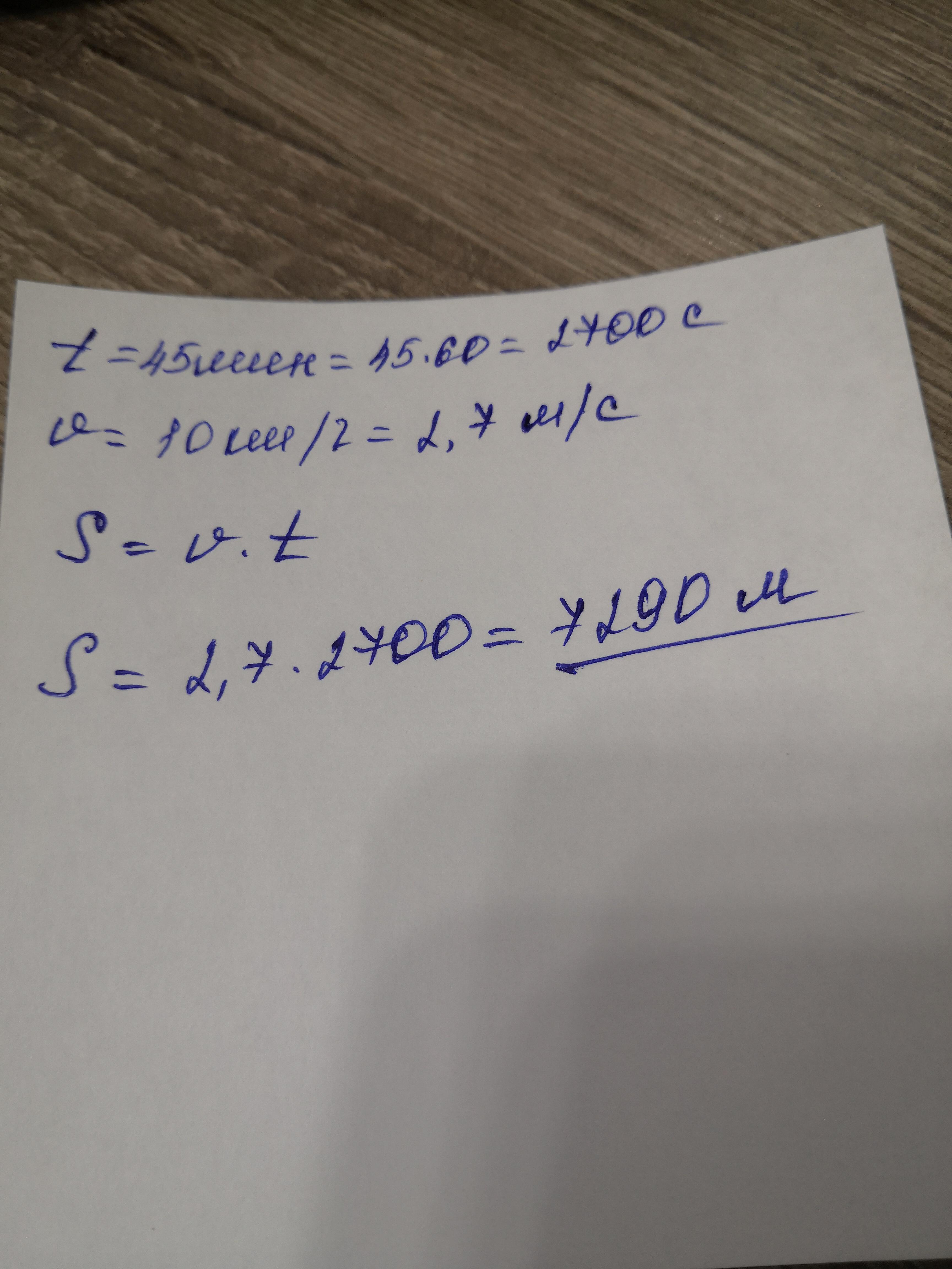 Мальчик катался 45 минут на велосипеде по парку со скоростью 10 км/ч. Какое расстояние он проехал? Ответ представьте в единицах системы СИ