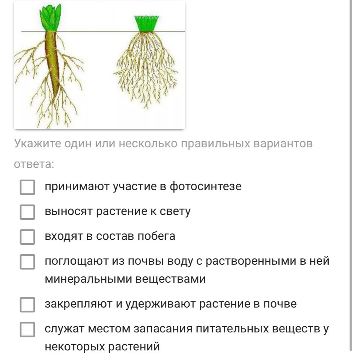 поглощают из почвы воду с растворенными в ней минеральными вещ-ми; закрепляют и удерживают растение в почве; служат местом запасания питательных вещ-в у некоторых растений