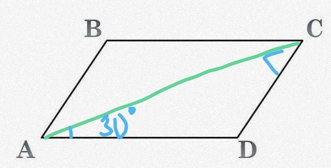 Діагональ паралелограма утворює з його сторонами кути 30°