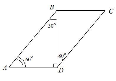 ∠АВС = ∠АDВ + ∠ВDС = 90° + 30° = 120°, тогда ∠ВАD = 180° - 120° = 60° (сумма углов параллелограмма, прилежащих к одной стороне, равна 180°).