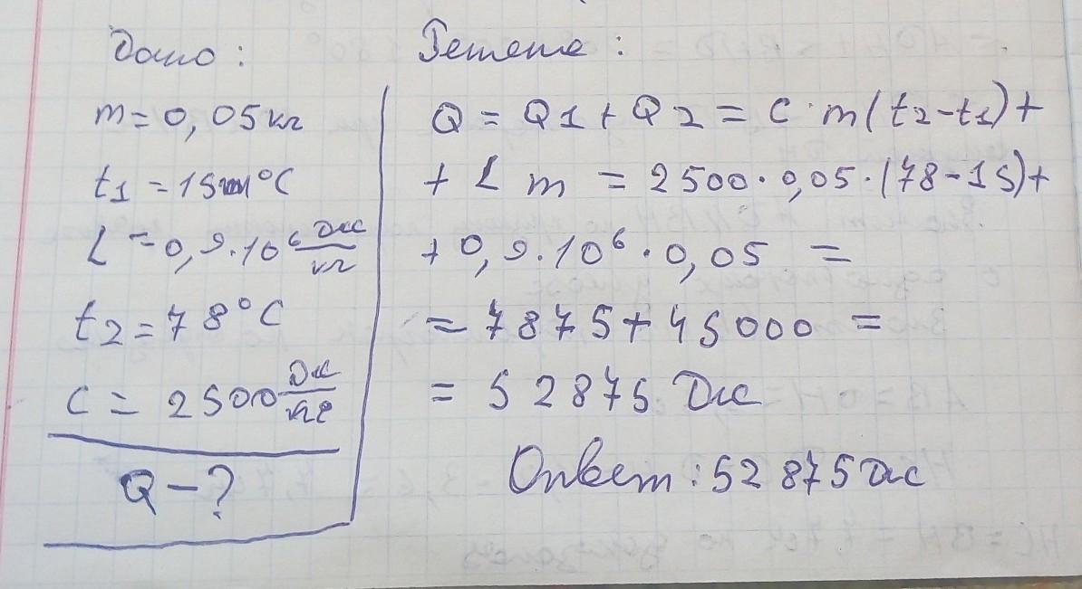 Какое количество теплоты требуется для обращения 50 г спирта , взятого при температуре 15 0 С в пар?