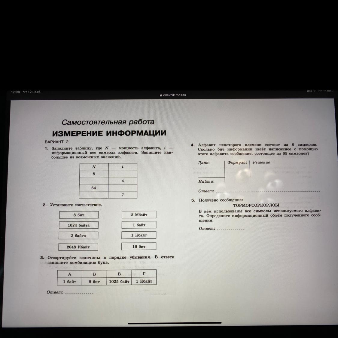 4. 2^i=N N=8 i=3 бита I=iK K=65 I=65*3бита = 195 бит
