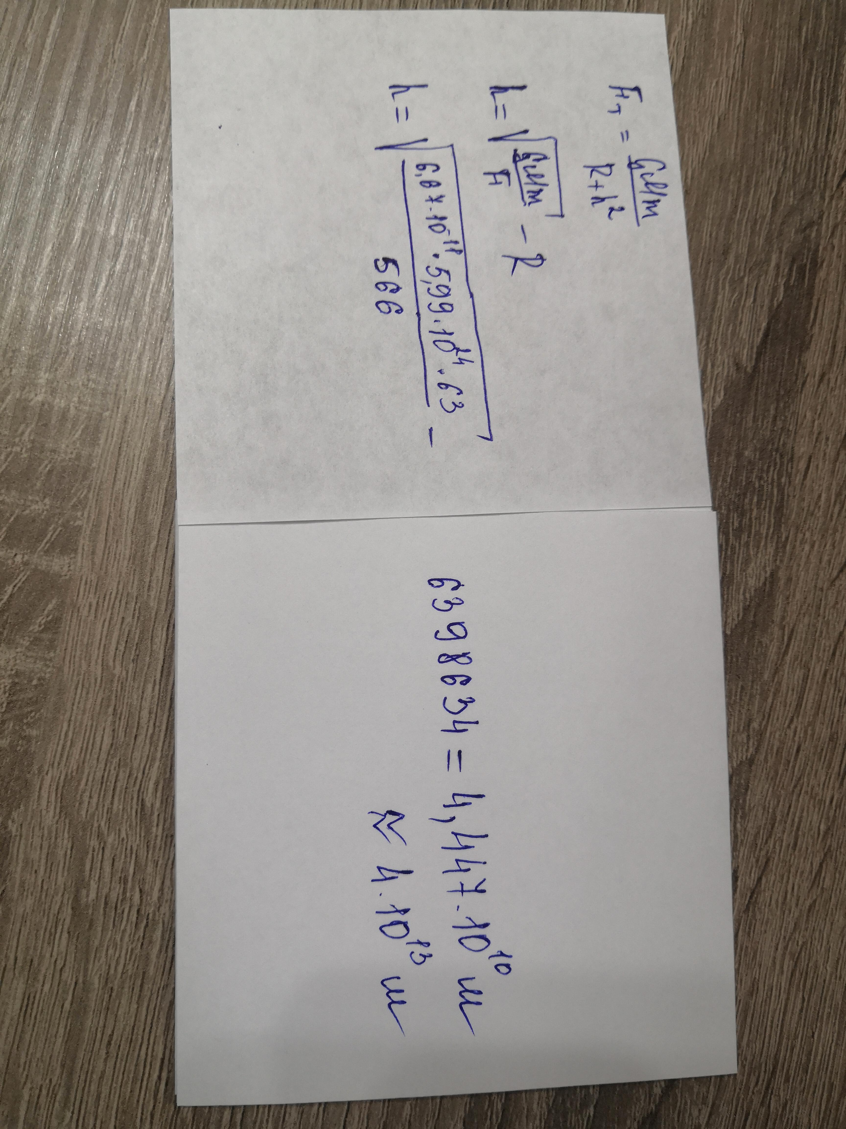 На шарообразное тело массой 63 кг действует сила тяжести, равная 566 Н. На какой высоте над поверхностью Земли находится тело? Радиус Земли считать равным 6398634 м, масса Земли — 5,99⋅10^24 кг.