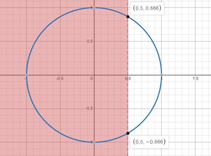 Итак, ограничиваем область значений меньше 1/2 , это не закрашенная область