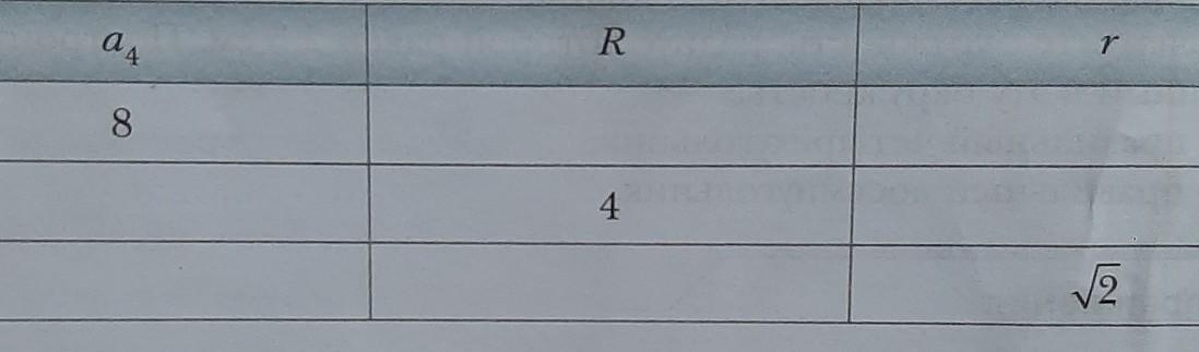 пусть a4 сторона квадрата R и r соответственно радиусы описанной и вписанной окружностей Заполните таблицу