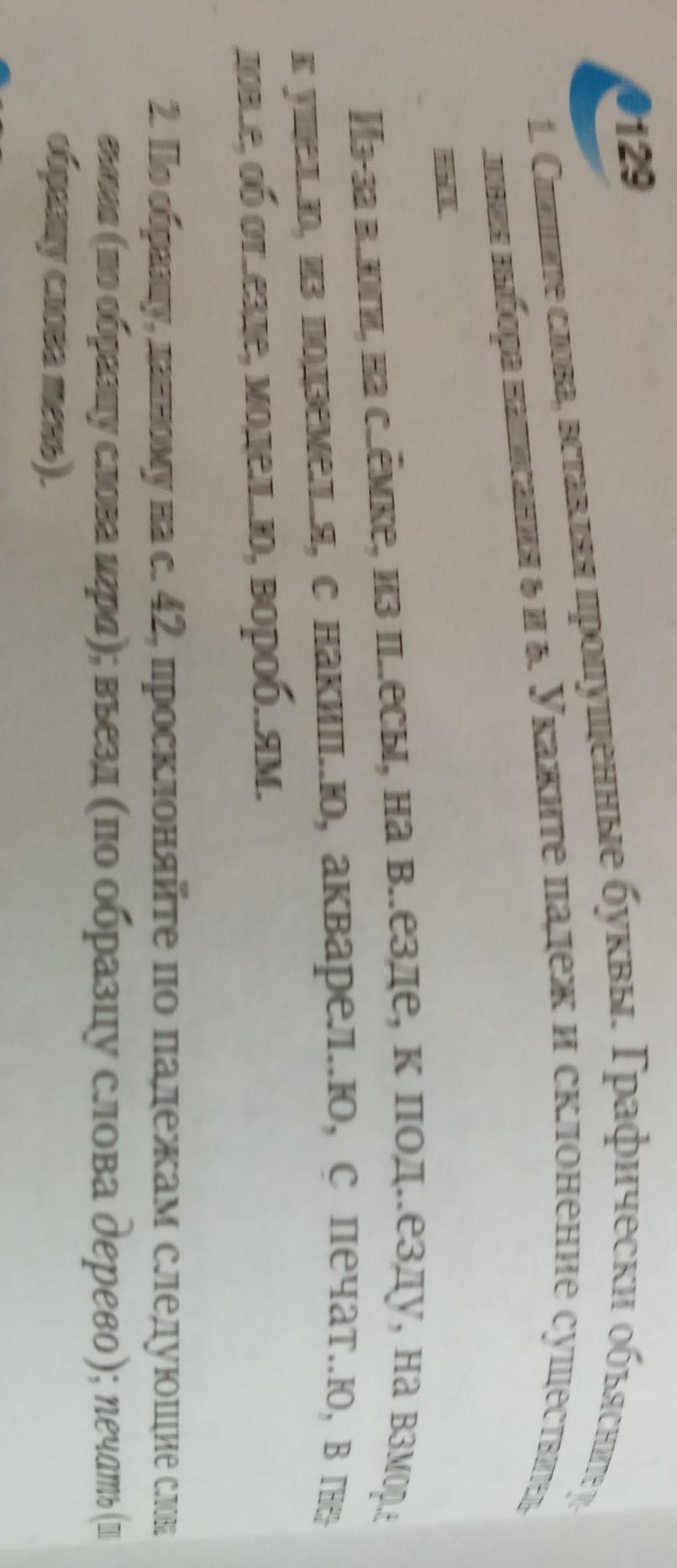 Из-за вьюги,Родительный падеж,склонение 1. На съемке, Предложный Падеж,1 склонение. Из пьесы,Родительный падеж,1 склонение. На въезде Предложный падеж,1 склонение. к подъезду,Дательный падеж,2 склонение. На взморье (наверное,ибо я не очень увидел), Предложный падеж,2 склонение. К ущелью,Дательный падеж,2 склонение. Из подземелья, Родительный падеж,2 склонение. С накипью,Предложный падеж,2 склонение. Акварелью,Творительный падеж,3 склонение. С печатью,Предложный падеж,3 склонение. В Гнездовье,Предложный Падеж,2 склонение. Об отъезде,Предложный падеж,2 склонение. Моделью,Творительный падеж,3 склонение,воробьям,Дательный падеж,2 склонение