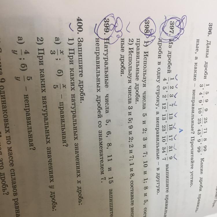 Правильные дроби: 1/4, 2/5, 7/12, 18/23,31/34