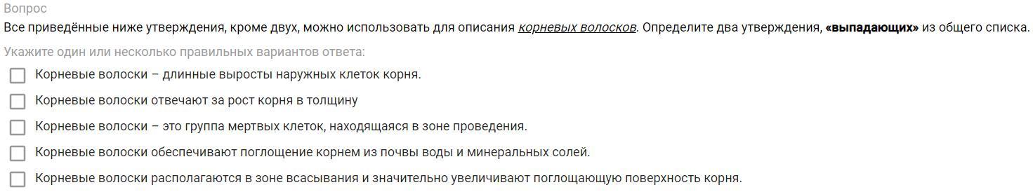 Ответ: корневые волоски-длинные выросты наружных клеток корня