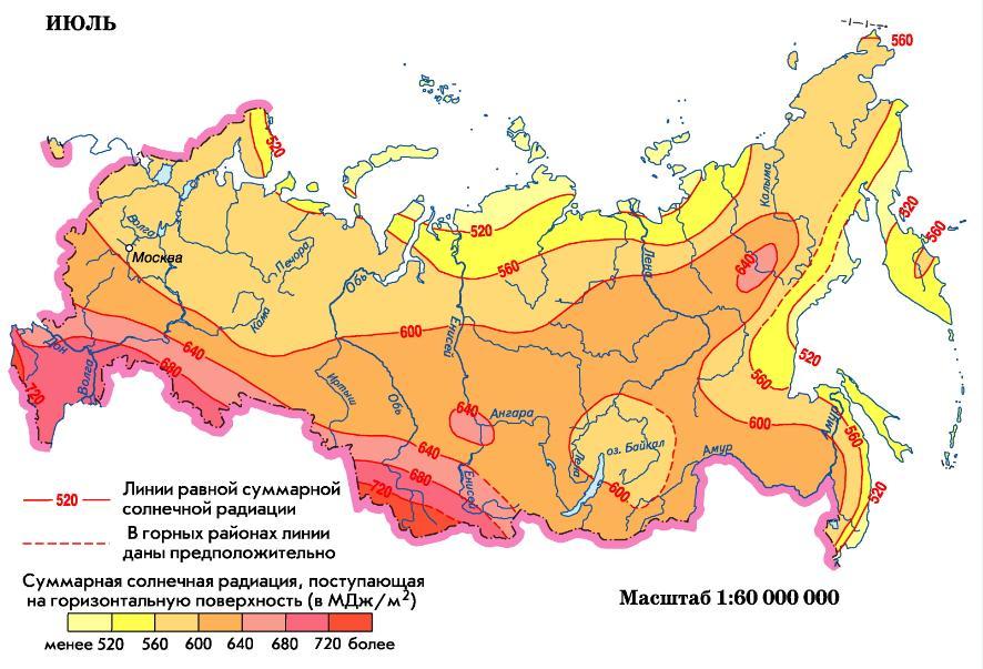 На территории России при движение (с севера на юг) в летний период разная температура воздуха потому, что она зависит от количества тепла, то есть солнечной радиации, а она в свою очередь зависит от угла падения солнечных лучей, который увеличивается с севера на юг.